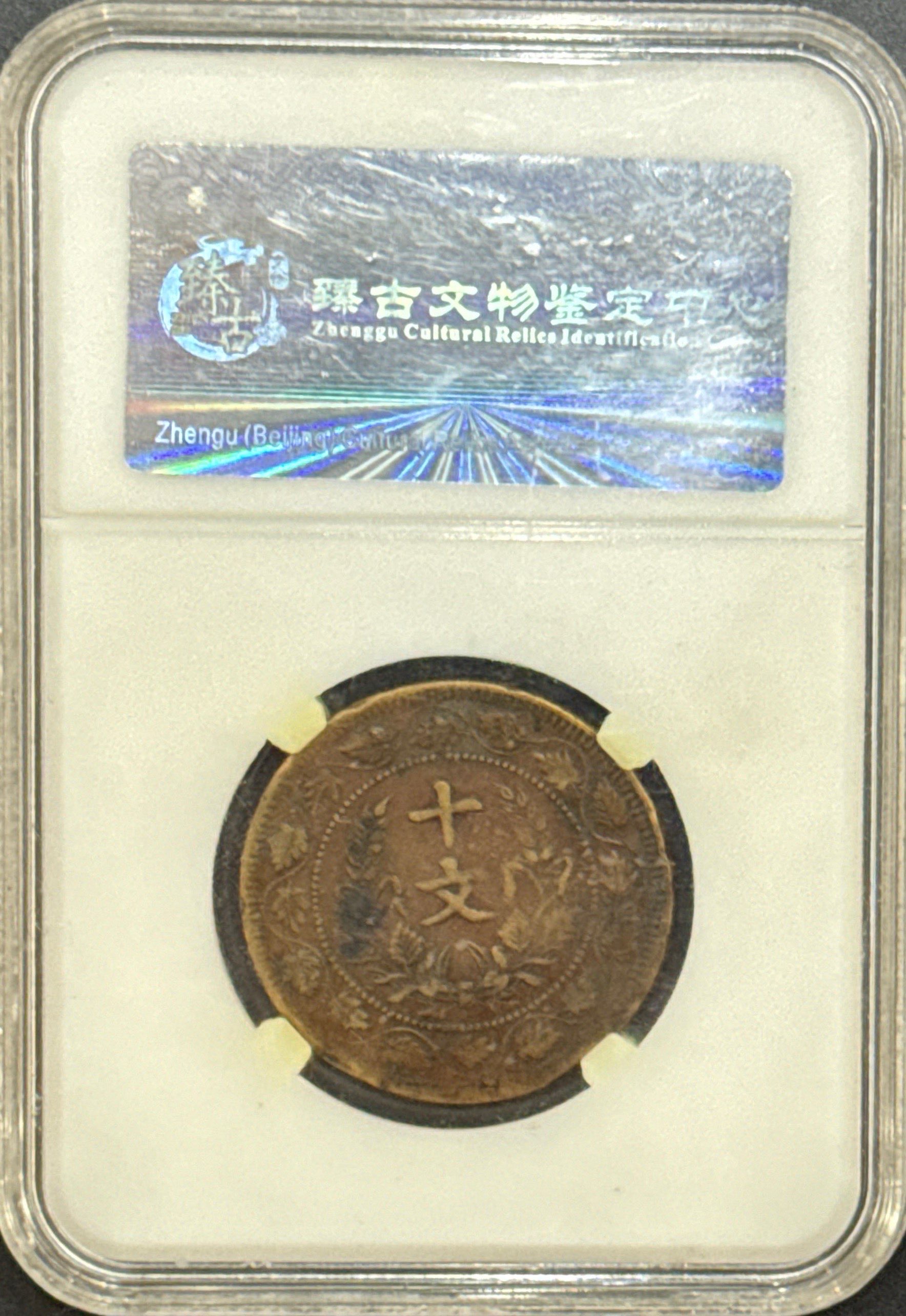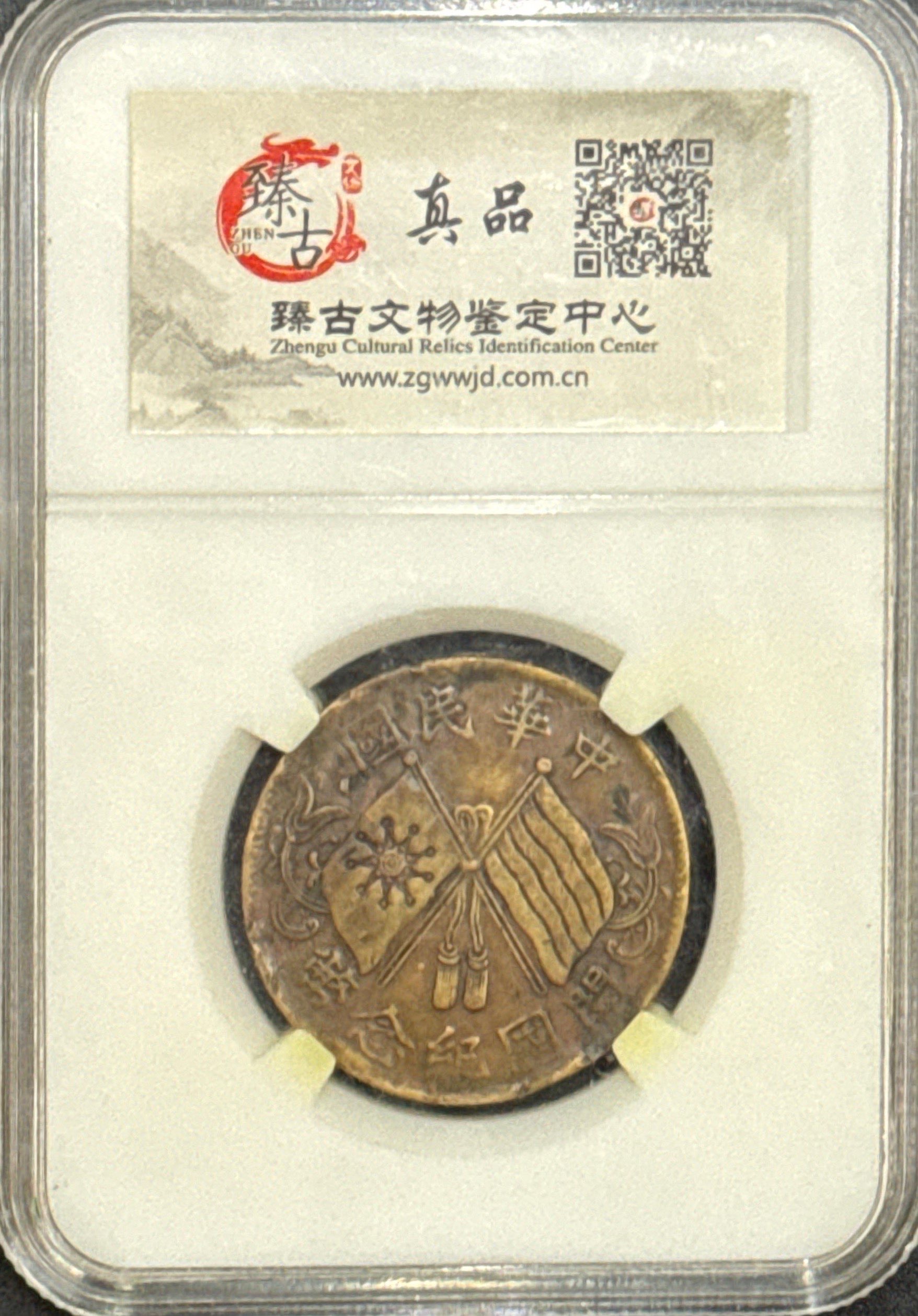 雙旗的線(xiàn)條、纏枝紋的層次均體現(xiàn)了當(dāng)時(shí)地方造幣廠(chǎng)的工藝水準(zhǔn),齒邊(雖封裝中未完全展示)的規(guī)整度是判斷機(jī)制銅元真?zhèn)蔚闹匾罁?jù)之一。這枚銅元既是民國(guó)初期機(jī)制銅元工藝的代表,也是研究近代中國(guó)幣制轉(zhuǎn)型、政治符號(hào)傳播的重要實(shí)物資料,其承載的政權(quán)更迭信息與市場(chǎng)流通功能,讓它在錢(qián)幣收藏中具有獨(dú)特的歷史與文化價(jià)值。