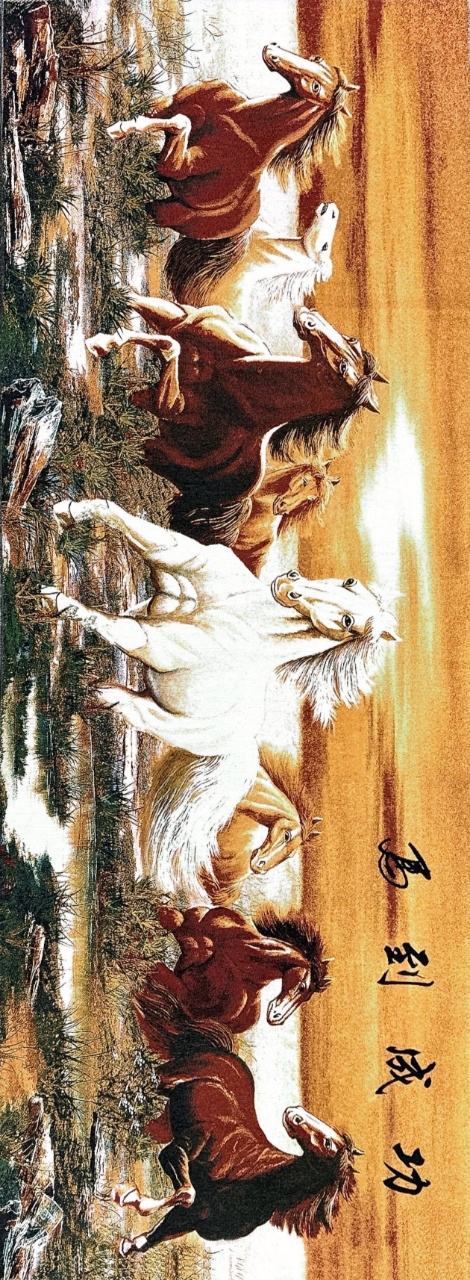 蘇繡“馬到成功”是將蘇繡技藝與“馬到成功”這一美好寓意相結合的藝術作品,以駿馬為主題,通過細膩針法展現(xiàn)馬的神韻。蘇繡“馬到成功”作品中的駿馬身姿矯健,肌肉線條流暢。繡工以細膩針法使每一根馬毛根根分明,在光線下還能呈現(xiàn)出微微光澤,馬的眼睛也往往繡得極為傳神,充滿勇往直前的氣勢。