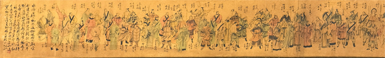 這幅清代江南居士的《水滸英雄108將》,從傳統(tǒng)書畫的專業(yè)維度看,堪稱清代同題材作品里的“妙構之作”:以《水滸傳》108將為核心,既精準捕捉了不同好漢的身份特質——武將的雄健棱骨、智將的雋雅神態(tài)、草莽的豪宕動勢,無“臉譜化”之弊;又以群體群像的排布,還原了“梁山聚義”的集群氣場,是文學IP與視覺藝術的高水準融合,在清代水滸題材作品中兼具系統(tǒng)性與感染力。