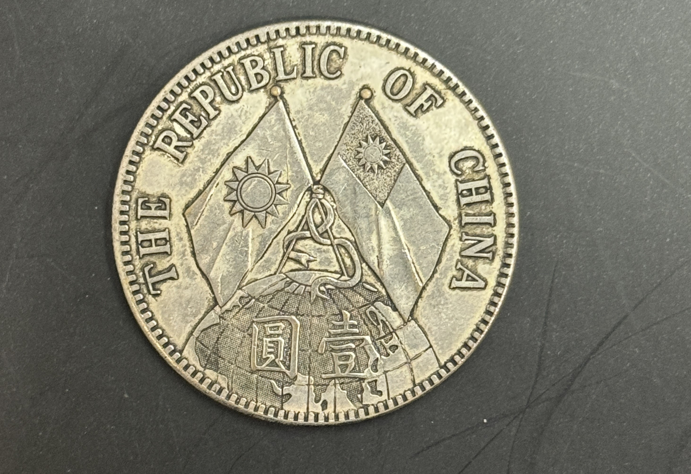 從政治符號(hào)建構(gòu)看,幣面元素是民國(guó)初期政權(quán)合法性的視覺表達(dá):正面孫中山側(cè)面像,是“共和之父”的象征,既強(qiáng)化了政權(quán)的歷史傳承性,也契合民國(guó)對(duì)“革命先驅(qū)”的紀(jì)念語(yǔ)境;背面的“地球雙旗”(青天白日滿地紅旗與青天白日旗交叉立于地球之上),以“地球”寓意“民族復(fù)興、世界格局”,雙旗則代表國(guó)民黨的政權(quán)標(biāo)識(shí),這類符號(hào)組合既宣示了民國(guó)的主權(quán)意識(shí),又暗含“以革命旗幟引領(lǐng)國(guó)家走向世界”的政治訴求,是民國(guó)早期“符號(hào)治國(guó)”在貨幣載體上的集中體現(xiàn)。