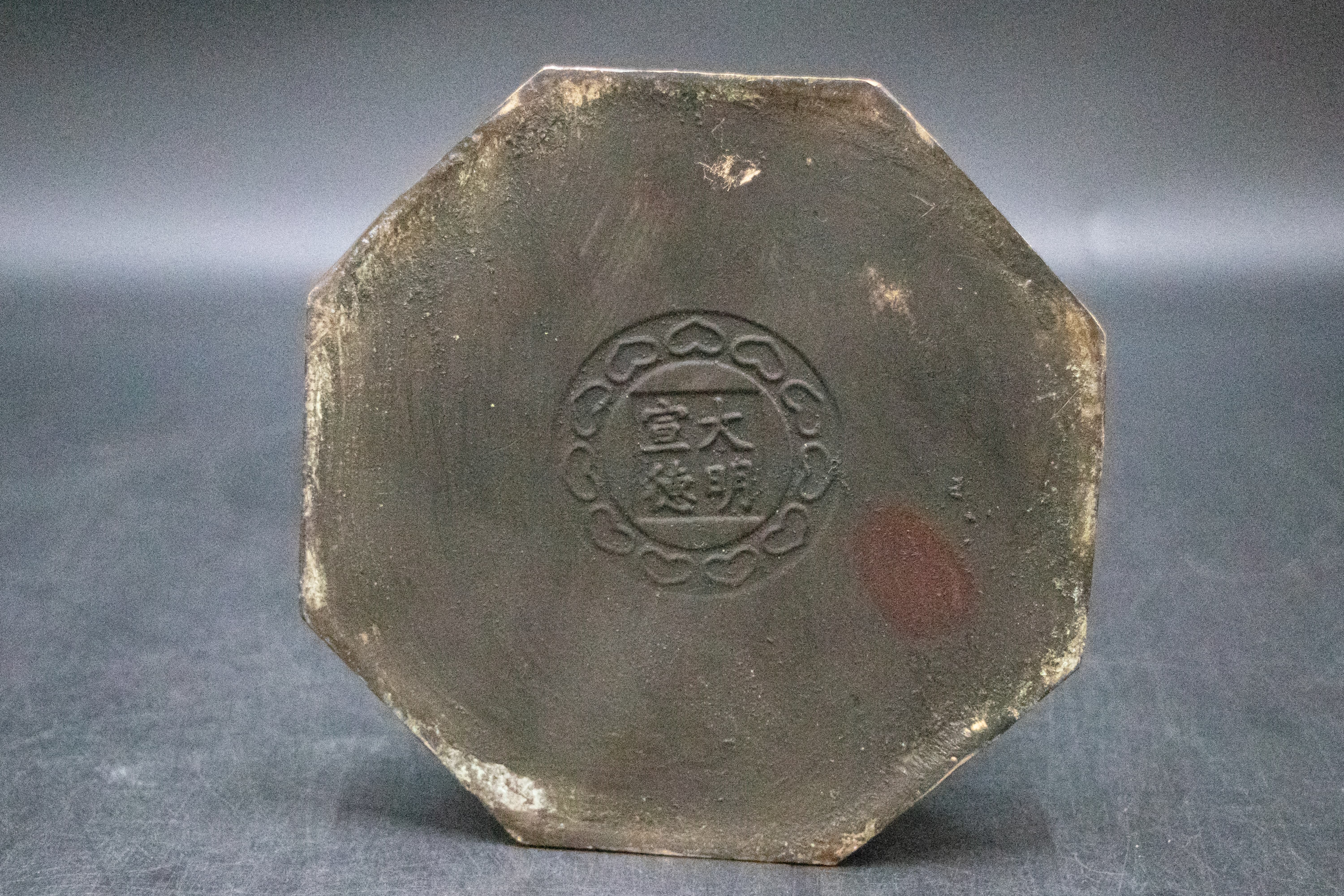 從款識信息看,底座刻有“大明宣德年制”款,字體為篆書,外飾如意云紋邊框,是宣德宮廷造像的標(biāo)準(zhǔn)款識格式。宣德時(shí)期宮廷造像多由御用監(jiān)造辦處制作,款識的規(guī)整性既是官方工藝的標(biāo)識,也為年代判定提供了直接依據(jù)、鑄造工藝與儀軌特征的一致性,是其“宣德風(fēng)格”的重要支撐。